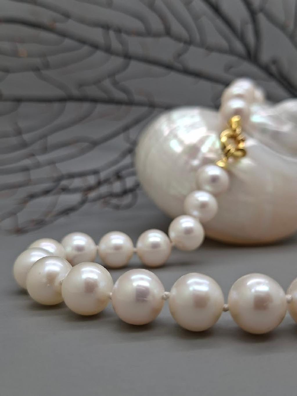 La loro luce è ciò che conquista davvero. Quell’oriente morbido della perla che non è solo brillantezza, ma profondità, riflessi che cambiano mentre ti muovi. Un bianco luminoso, leggermente caldo, perfetto per chi ama il bianco morbido anzichè il bianco metallico freddo tipico delle perle australiane.