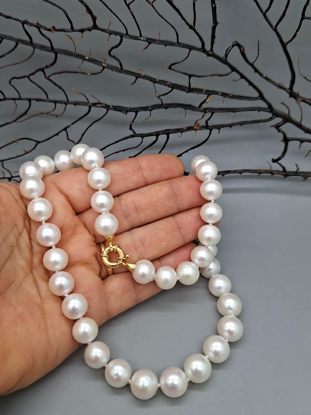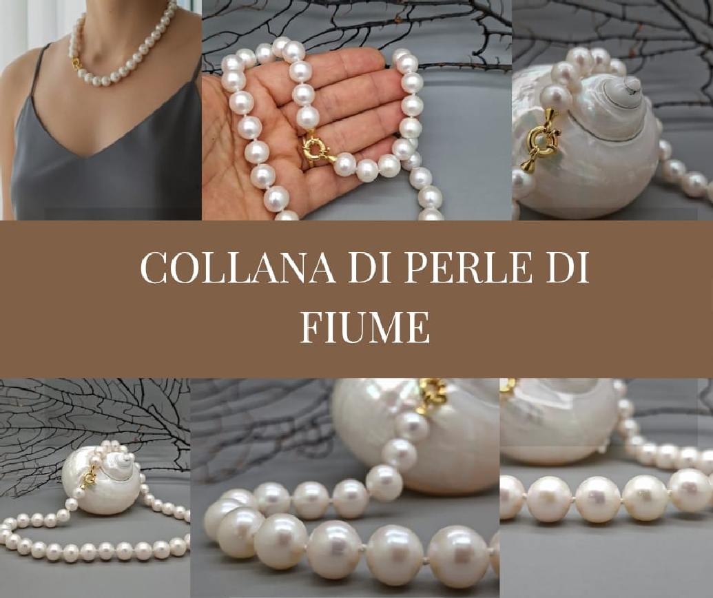Un filo di perle che si nota subito. Perché sono grandi e luminose. Sono perle coltivate in acqua dolce da 12 mm, una misura importante che regala presenza senza perdere dolcezza. Al collo si vedono, ma non gridano: raccontano.